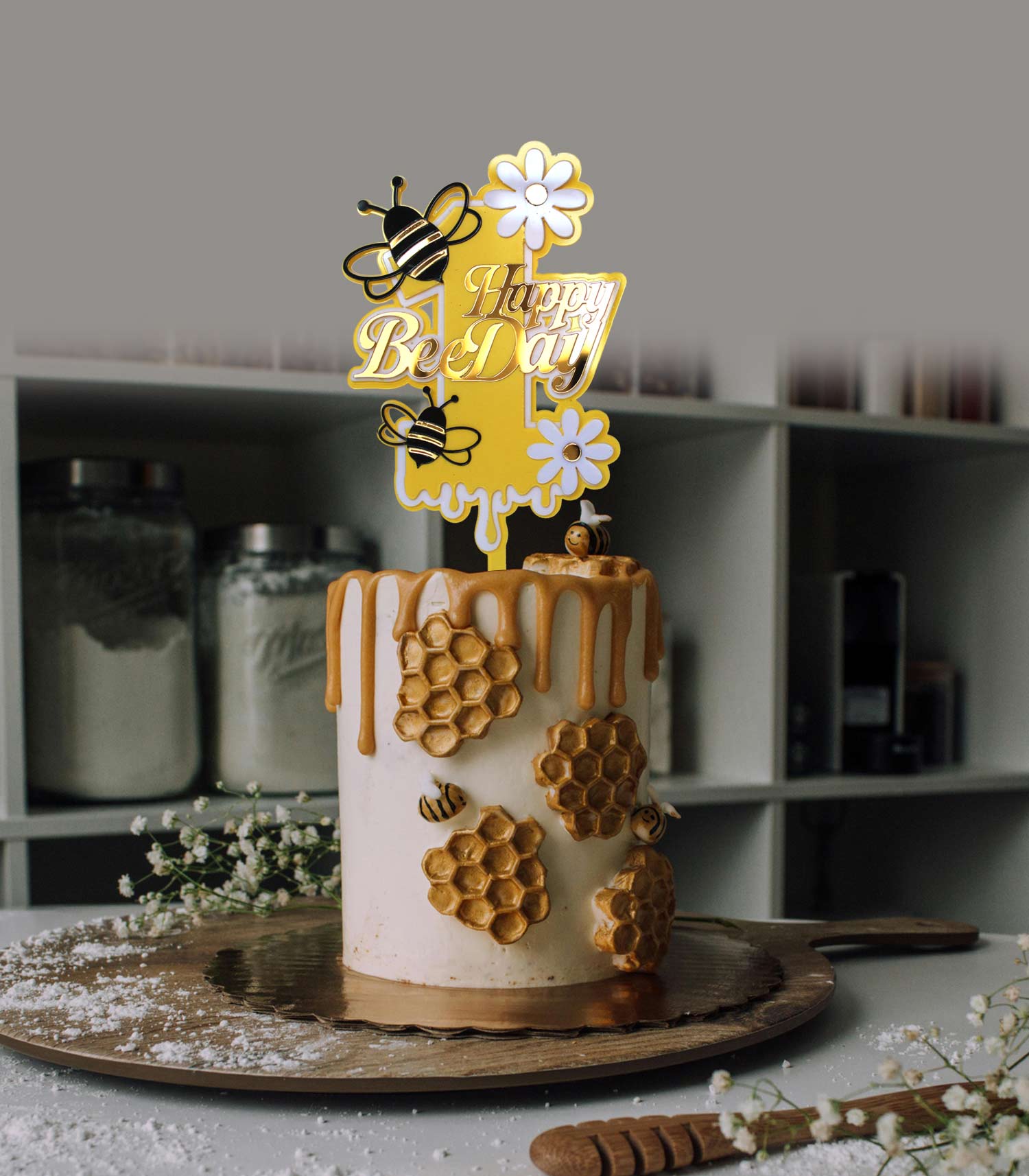 L’inscription “Happy Bee Day”, jeu de mots ludique et irrésistible, apporte une note unique et mémorable à votre décoration. Parfait pour un thème Bee / Abeilles / Nature / Jaune et Noir, ce topper transforme instantanément votre dessert en une vraie pièce maîtresse de la fête.