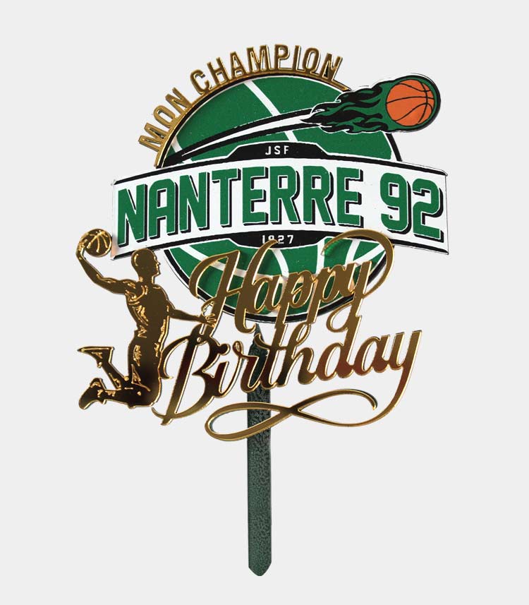 Fabriqué avec soin, ce topper est à la fois léger et résistant, facile à placer sur tout type de gâteau. Il convient parfaitement pour une fête d’anniversaire à thème basket, notamment pour les fans de l’équipe de Nanterre.