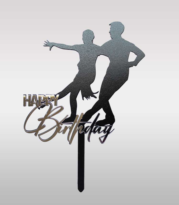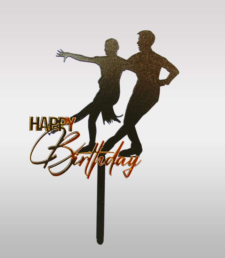 Topper cake Patinage Artistique disponible en 2 versions : couple doré, couple argent. Décoration élégante et brillante pour anniversaires et compétitions de patinage.